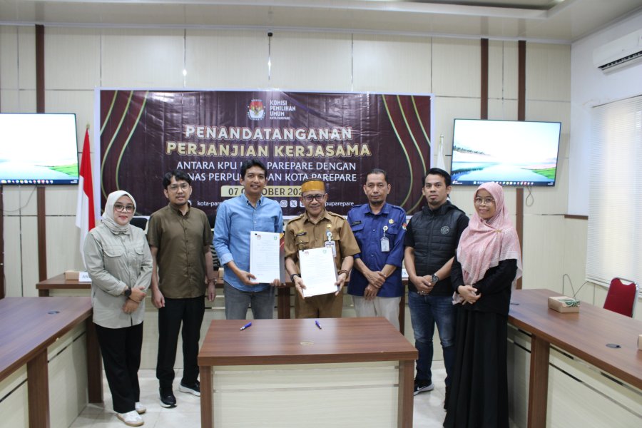 Parepare, 7 Oktober 2025 — Dalam upaya meningkatkan partisipasi dan kualitas pemilih menghadapi pesta demokrasi yang akan datang, Komisi Pemilihan Umum (KPU) Kota Parepare resmi menandatangani Perjanjian Kerjasama dengan Dinas Perpustakaan Kota Parepare. Acara penandatanganan dilaksanakan di Aula Kantor KPU Kota Parepare dan dihadiri oleh Komisioner, Plt. Sekretaris, serta jajaran KPU Kota Parepare. "Dengan adanya Perjanjian kerjasama ini maka Dinas Perpustakaan dapat mendukung dan mensosialisasikan program-program KPU ke depannya", kata Muh. Awal Yanto. Ia menambahkan bahwa harapannya melalui program penandatanganan kerjasama ini kita dapat mencerdaskan pemilih-pemilih dari berbagai segmen. Kepala Dinas Perpustakaan Kota Parepare, Bapak Ahmad, menyatakan kesiapan institusinya untuk berkolaborasi dengan KPU dalam menyukseskan agenda demokrasi. "Kami akan menyediakan berbagai koleksi buku yang relevan dengan kebutuhan KPU serta mengoperasikan perpustakaan keliling sebagai sarana sosialisasi pendidikan pemilih," jelas Ahmad. Ia juga menekankan pentingnya saling bertukar informasi antara kedua instansi dalam mempersiapkan pesta demokrasi mendatang sehingga seluruh lapisan masyarakat dapat terlibat secara aktif dan informatif. Adapun ruang lingkup kerjasama yang disepakati meliputi beberapa aspek penting, yaitu: a. Pendampingan teknis dan pengembangan kapasitas sumber daya manusia, khususnya bagi petugas arsip di lingkungan KPU Kota Parepare; b. Fasilitasi pembentukan Pojok Baca Demokrasi di Perpustakaan Umum sebagai wadah literasi politik dan demokrasi; c. Dukungan layanan mobil perpustakaan keliling yang akan dimanfaatkan dalam berbagai kegiatan sosialisasi pendidikan pemilih; d. Penyediaan koleksi buku dan referensi terkait demokrasi, hukum, dan politik di Perpustakaan KPU Kota Parepare sebagai sumber belajar bagi pemilih. Penandatanganan perjanjian kerjasama ini menjadi tonggak penting dalam sinergi perpustakaan daerah dan KPU Kota Parepare untuk meningkatkan kualitas demokrasi di Kota Parepare. Dengan kolaborasi ini, diharapkan tingkat partisipasi pemilih dapat meningkat secara signifikan, sekaligus membentuk pemilih yang lebih kritis dan berpengetahuan luas. ....