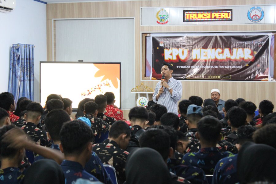 Komisi Pemilihan Umum (KPU) Kota Parepare melaksanakan program KPU Mengajar pada Selasa, 27 Januari 2026, di UPT SMKN 1 Parepare. Kegiatan ini merupakan program Sosialisasi dan Pendidikan Pemilih yang digagas KPU Provinsi Sulawesi Selatan untuk memperkuat literasi demokrasi di kalangan generasi muda. Program KPU Mengajar secara spesifik menyasar pemilih pemula pada tingkat SMA/sederajat. Tujuannya adalah untuk meningkatkan partisipasi masyarakat dalam penyelenggaraan pemilu secara berkelanjutan, sejak usia dini. Para pelajar yang hadir pada kegiatan tersebut dibekali pemahaman mendasar mengenai proses demokrasi di Indonesia. Materi utama mencakup konsep demokrasi dan pemilu, asas pemilu yang langsung, umum, bebas, rahasia, jujur, dan adil (Luber Jurdil), serta tujuan penyelenggaraan pemilu dalam mewujudkan kedaulatan rakyat. Penyampaian dilakukan secara interaktif oleh Ahmad Perdana Putra, anggota KPU Kota Parepare, yang menekankan peran strategis generasi muda sebagai pemilih pemula dalam menentukan arah kehidupan bangsa dan negara melalui penggunaan hak pilih yang bijak. Kegiatan semakin dinamis berkat integrasi game interaktif dan debat mini bertema kepemiluan, yang berhasil memicu antusiasme tinggi di kalangan siswa. Sesi game melatih pemahaman praktis tentang tahapan pemilu dan istilah-istilah dalam penyelenggaraan pemilu, sementara debat mini mendorong siswa menganalisis mosi yang telah diberikan. Pendekatan ini tidak hanya menyenangkan, tetapi juga efektif dalam membangun kemampuan berpikir kritis dan argumentatif. Siswa Kelas XI Manajemen SMKN 1 Parepare menunjukkan partisipasi aktif yang luar biasa sepanjang kegiatan. Mereka terlibat penuh dalam setiap sesi, mulai dari menyelesaikan tantangan game hingga menyusun argumen dalam debat, sehingga proses pembelajaran berlangsung optimal. Secara keseluruhan, program KPU Mengajar ini diharapkan berkontribusi signifikan terhadap peningkatan indeks partisipasi pemilih pemula pada Pemilu 2029 mendatang. KPU Kota Parepare berkomitmen melanjutkan inisiatif serupa untuk mencetak generasi muda yang tidak hanya melek politik, tetapi juga kritis, bertanggung jawab, dan teguh mempertahankan nilai-nilai demokrasi. Turut hadir Kepala sub bagian Sosialisasi Pendidikan Pemilih, Partisipasi Masyarakat dan Sumber Daya Manusia (SDM) dan para staff KPU Kota Parepare ....