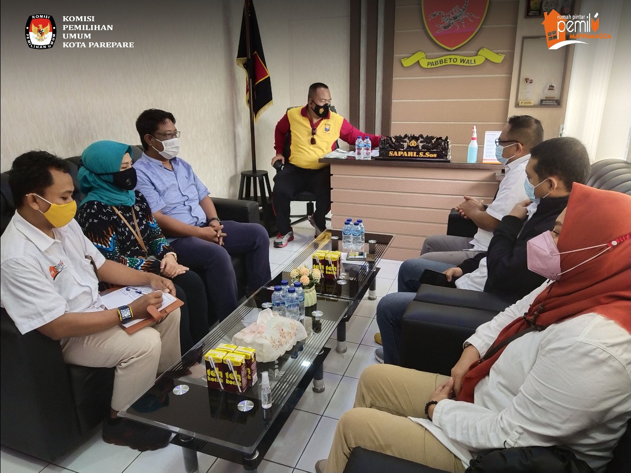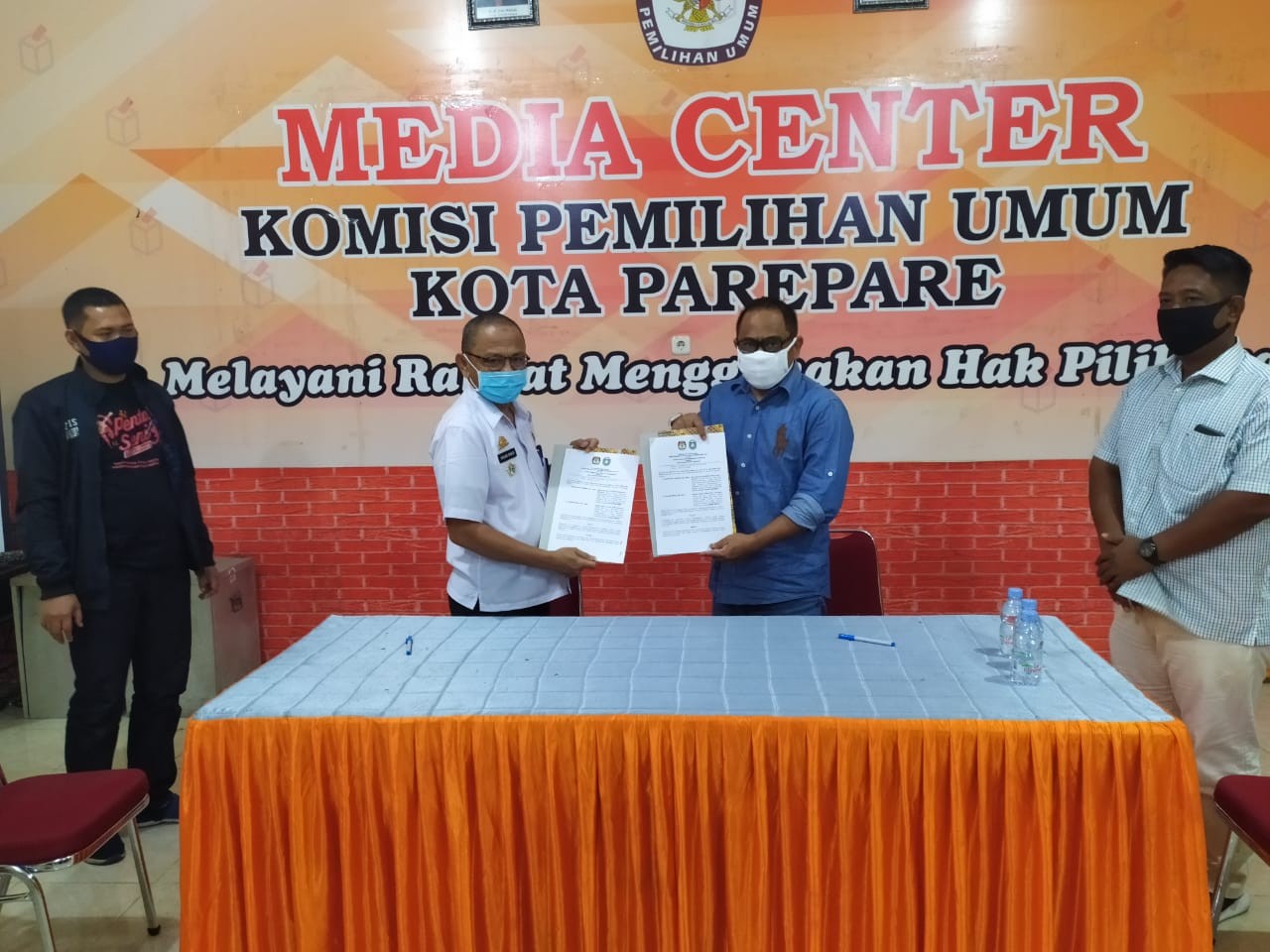 Kamis ( 23/7/2020) pukul 14.21 di ruang Media Centre Komisi Pemilihan Umum (KPU),Komisi Pemilihan Umum (KPU) Menyelenggarakan kegiatan penandtanganan Nota Kesepahaman (MoU) Bersama Dinas Sosial Kota Parepare hadir dalam kegiatan ini Ketua dan Anggota Komisi Pemilihan Umum (KPU) Kota Parepare , Kepala Dinas Sosial Kota parepare beserta jajaran Kota parepare dan jajaran sekertariat Komosi Pemilihan Umum (KPU)Kota parepare Dalam sambutannya Ketua Komisi Pemilihan Umum (KPU) Kota Parepare Hasruddin Husain menjelaskan kerjasama dengan Dinas Sosial Kota Parepare dalam pelaksanaan kegiatan Pemutakhiran daftar pemilih berkelanjutan di Kota Parepare, yang mana kerjasama ini dilakukan untuk meningkatkan kualitas dalam proses memperbaharui (updating) data pemilih yang bertujuan untuk memudahkan proses pemutakhiran daftar pemilih pada Pemilu atau Pemilihan berikutnya di Kota Parepare Kepala Dinas Sosial Kota Parepare Hasan Ginca , Dinas Sosial akan bekerja sama dengan Komisi Pemilihan Umum (KPU) Kota Parepare dalam mensukseskan kegiatan pemutakhiran Daftar Pemilih Berkelanjutan dalam wilayah Kota Parepare khususnya bagi pemilih yang merupakan warga sosial dan penyandang disabilitas, serta Dinas Sosial siap membantu dan menfasilitasi KPU Kota Parepare untuk memberikan dukungan data warga sosial dan penyandang disabilitas dalam wilayah Kota Parepare. Kerjasama ini dikuatkan dalam penandatanganan Nota Kesepahaman (MoU), Kamis (23/7/2020), di Media Center KPU Kota Parepare, dengan tetap menerapkan protokol kesehatan.