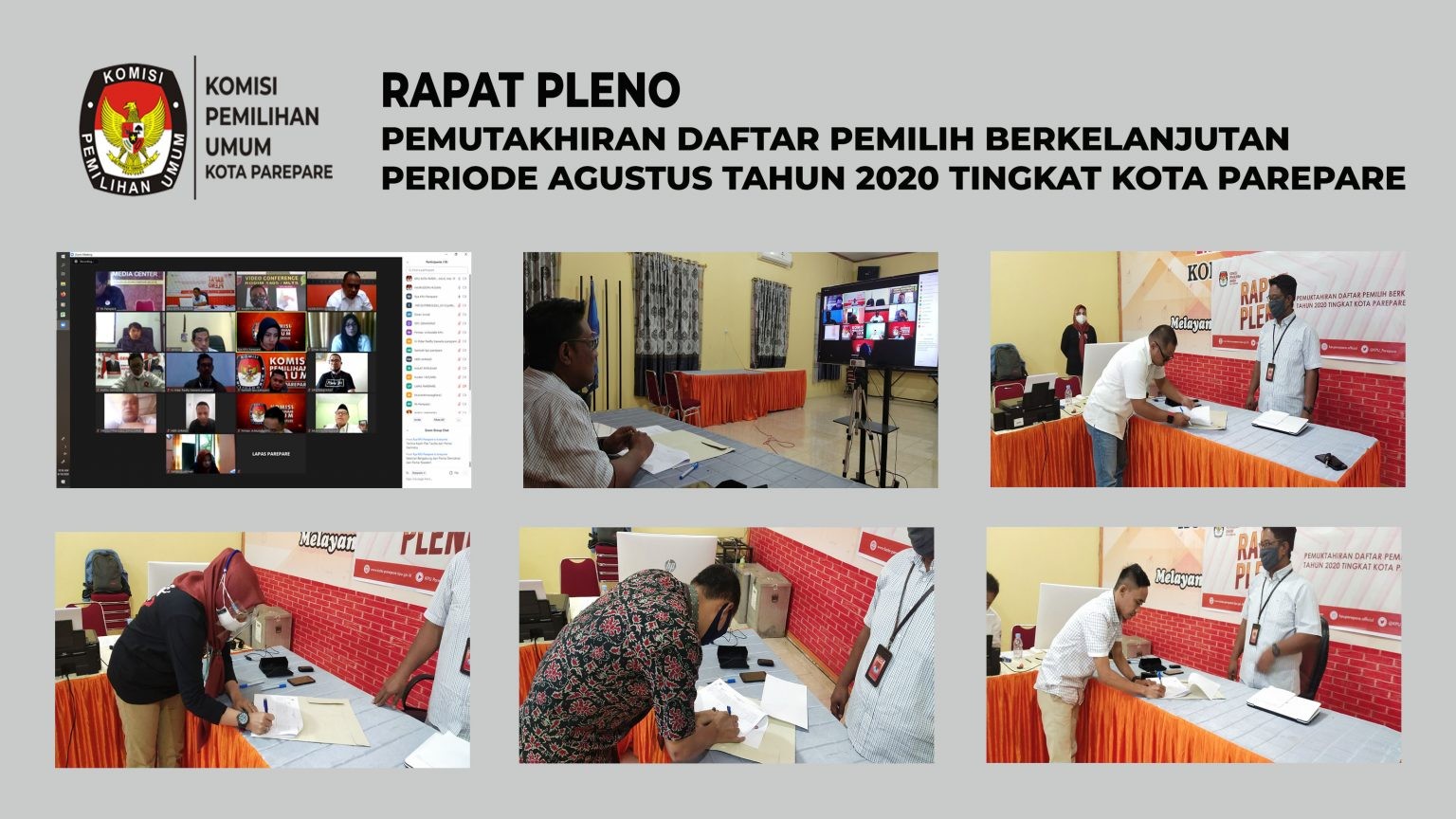 Rapat Pleno Pemutakhiran Data Pemilih Berkelanjutan (DPB) periode Juli 2020, juga berlanjut di Kantor Komisi Pemilihan Umum (KPU) Parepare, Senin (20/7/2020). Hadir dalam kegiatan ini Ketua dan Anggota KPU Kota Parepare, Badan Pengawas Pemilu (Bawaslu) Kota Parepare, Dandim 1405 MALLUSETASI, Kasat Intelkam Polres Parepare, Kesbangpol, Kemenag Kota Parepare, Kepala Badan Pemasyarakatan Kls II Kota Parepare, Kepala Dinas Kependudukan dan Pencatatan Panggilan, Kepala Dinas Sosial serta perwakilan partai politik.