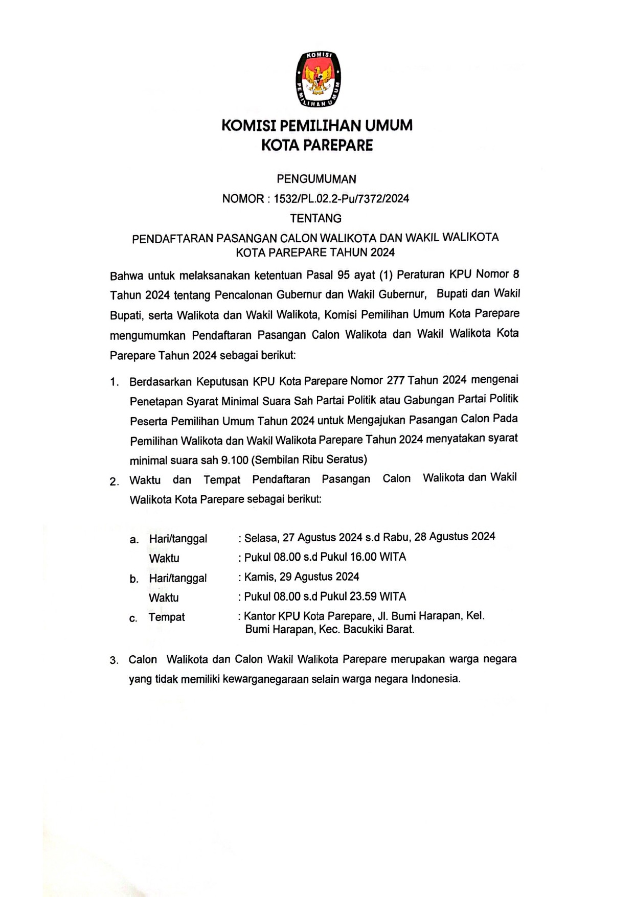 TERPILIH PADA KOTA PAREPARE TAHUN 2024