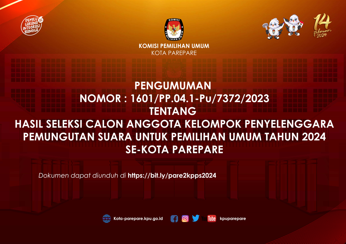 Berdasarkan Hasil Seleksi Calon Anggota Kelompok Penyelenggara Pemungutan Suara untuk Pemilu Tahun 2024, disampaikan hal-hal sebagai berikut :